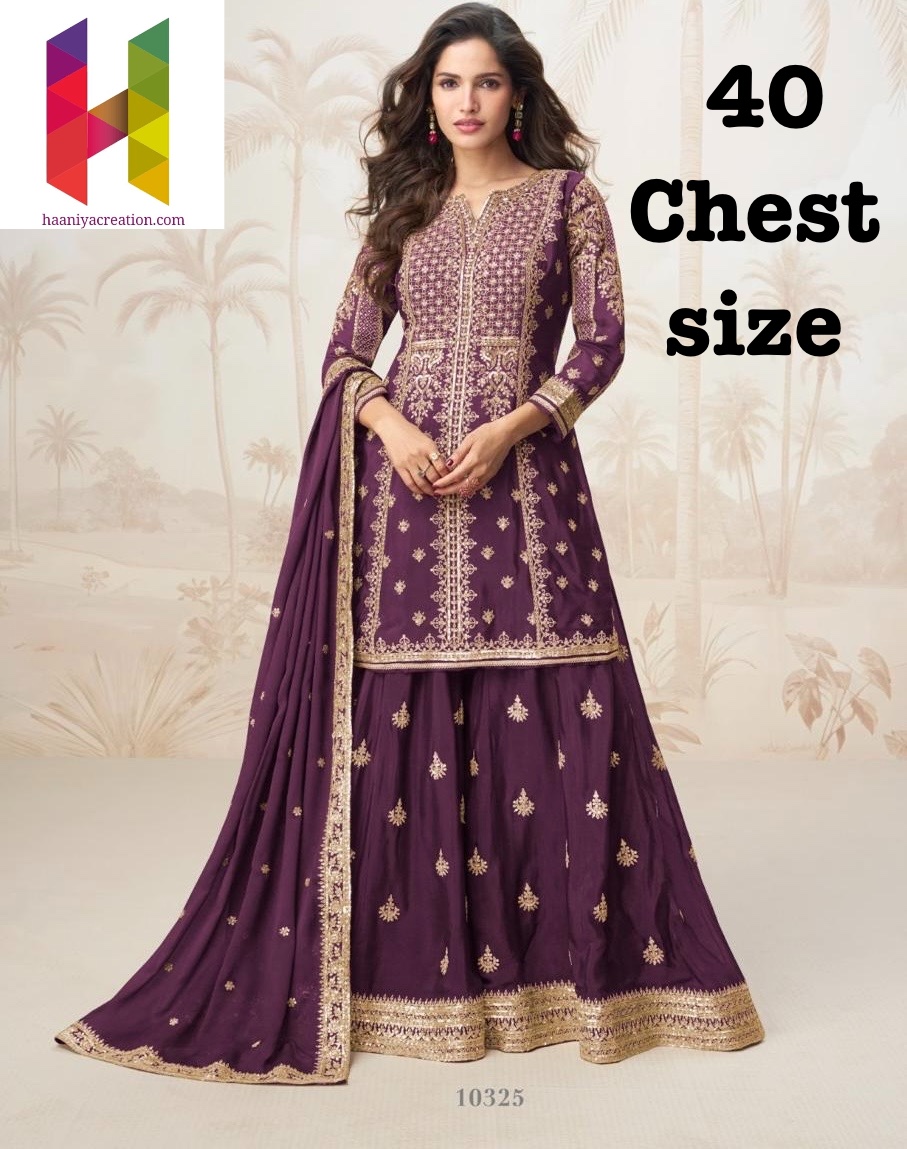 Material:pure chinon silk with all over front and back heavy zari embroidered