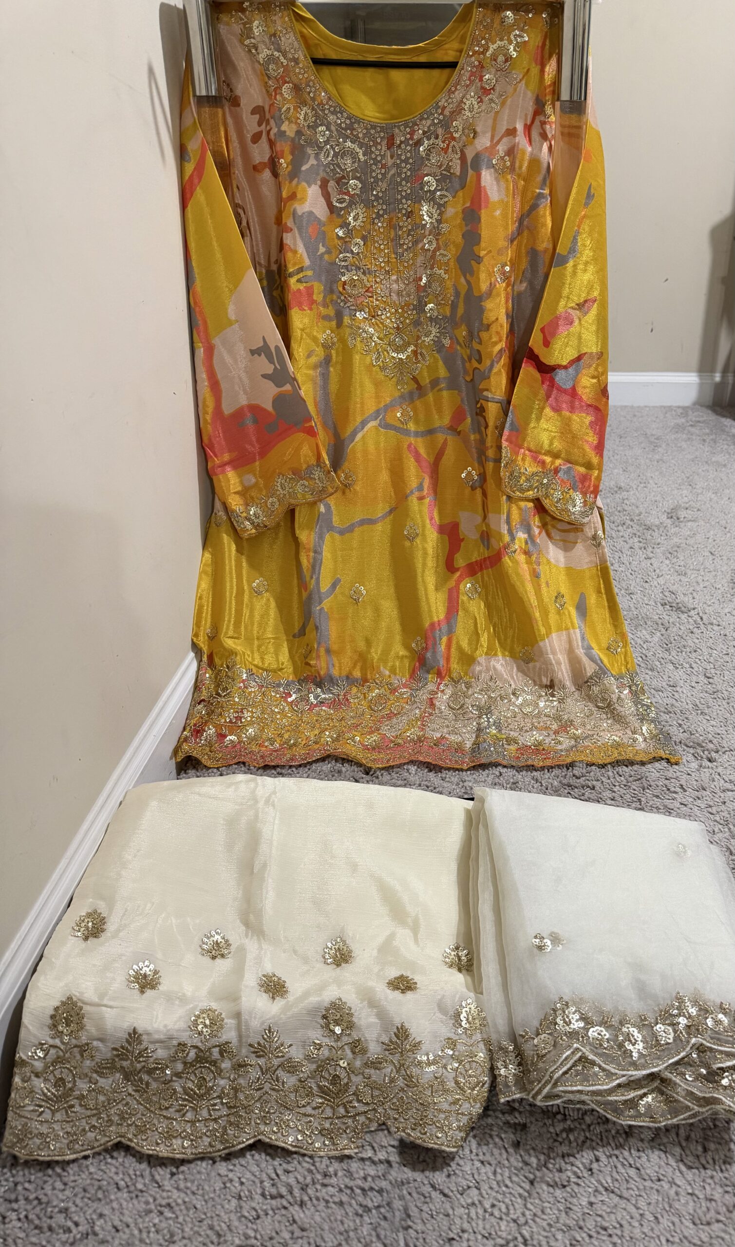 Kashmiri embroidered cord set dress