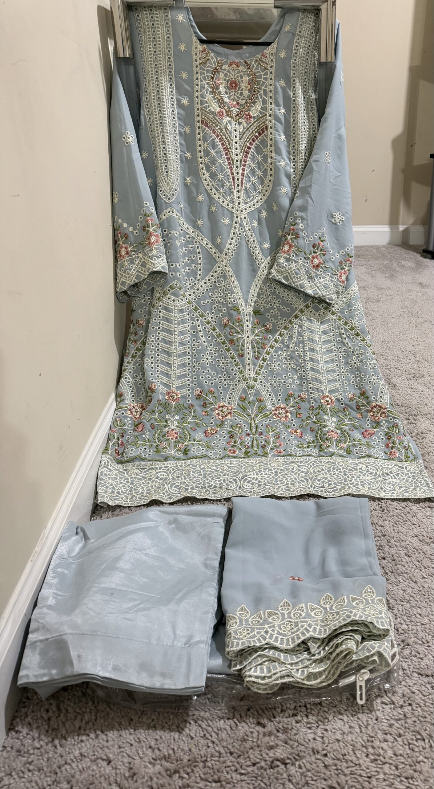 Kashmiri embroidered cord set dress