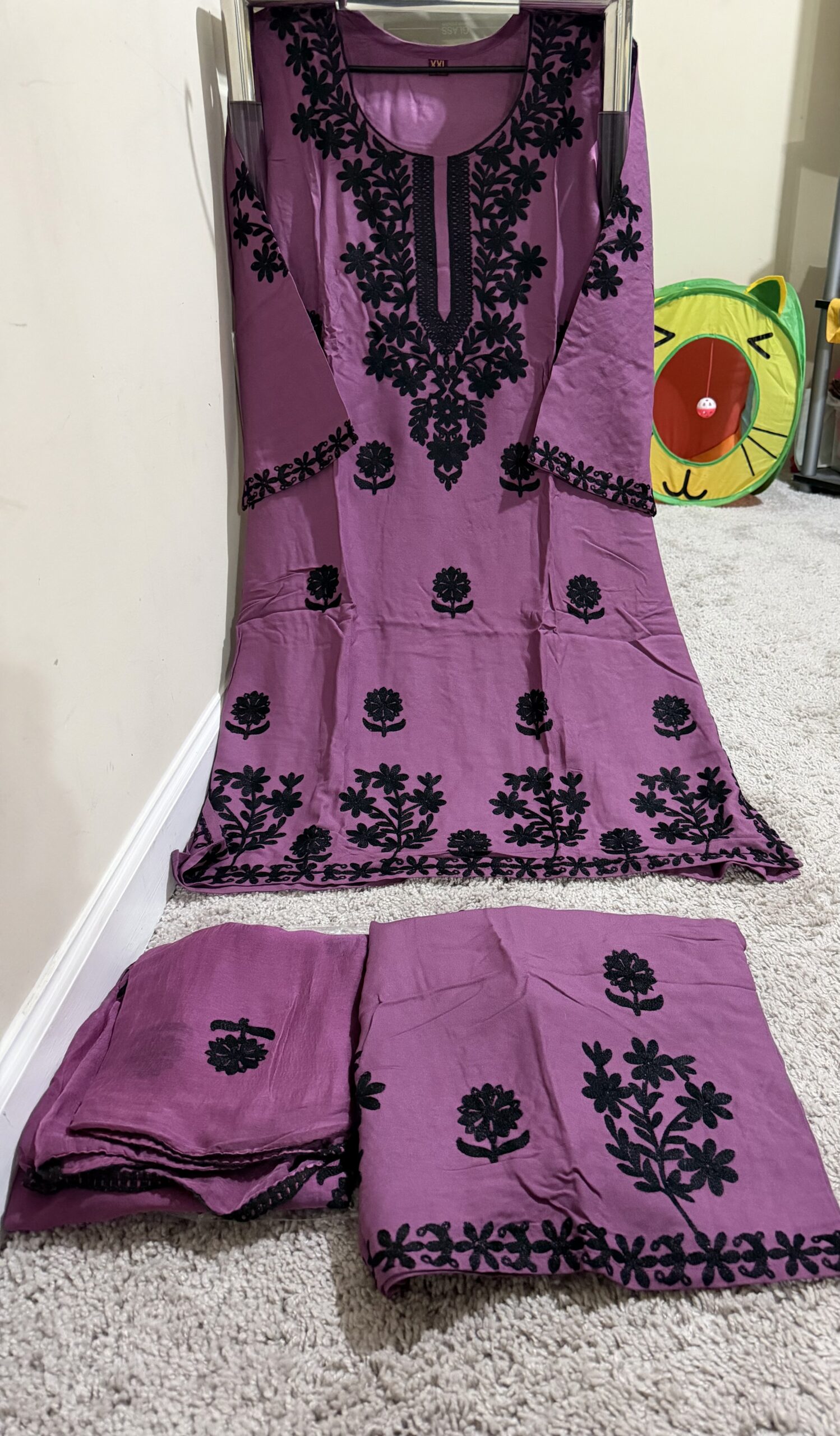 Kashmiri embroidered cord set dress